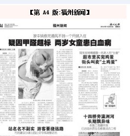 2014年11月30日,《福州晚報(bào)》上刊登了一篇題為《疑因甲醛超標(biāo) 兩歲女童患白血病》,讓社會(huì)的目光聚焦在這個(gè)不幸的家庭上。孩子患病的原因,家人表示懷疑與之前家里裝修后甲醛超標(biāo)有關(guān),在孩子未滿1歲時(shí),曾給老家的房子裝修過(guò)一次,當(dāng)時(shí)住的房間都刷了油漆,有購(gòu)買了新的電視柜、床頭柜等木漆家居。而當(dāng)時(shí)裝修完不到1個(gè)月就入住了,之后孩子就經(jīng)常發(fā)燒,但檢查也沒(méi)發(fā)現(xiàn)大問(wèn)題,不曾想是裝修導(dǎo)致的。